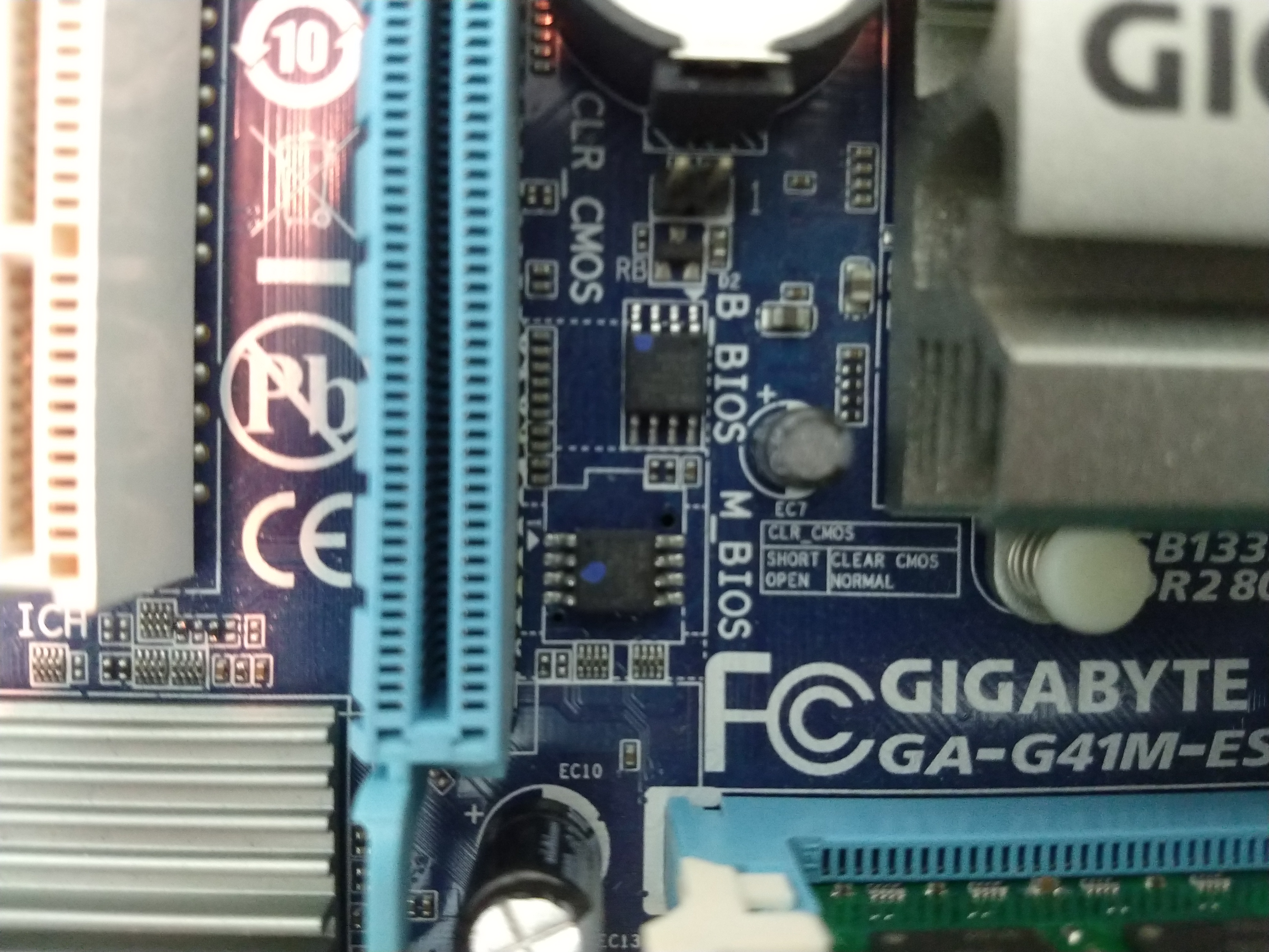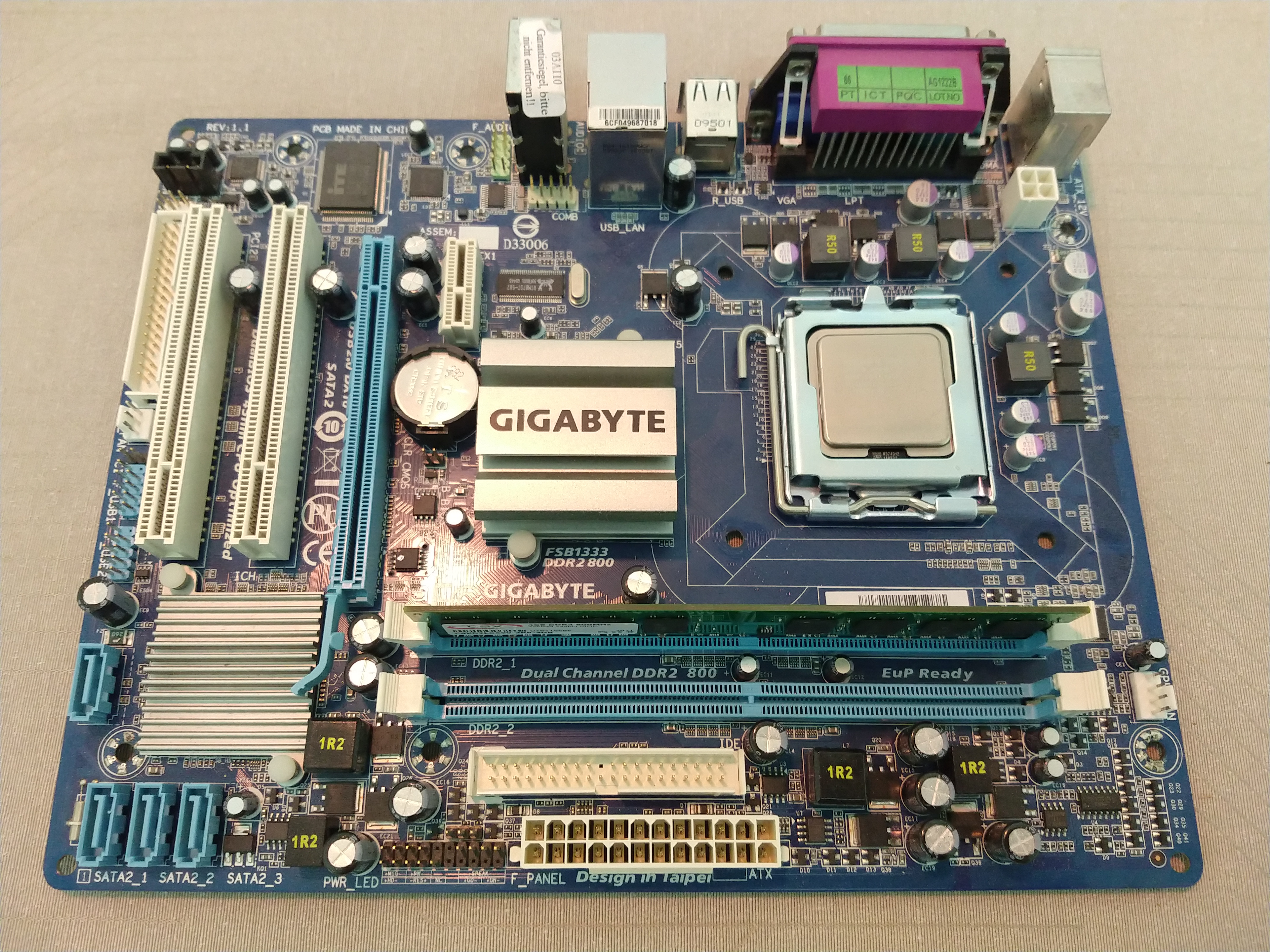 Und natürlich mein erstes freies Board, das GA-G41M-ES2L mit dem letzten noch funktionierenden 4GB-Stick und einem angepassten Xeon. Dieses Board habe ich über 7 Jahre lang genutzt und war mein Einstieg in Libreboot/Coreboot. Tolles Board mit 2. BIOS-Chip der mit der Powertaste getriggert werden kann - für Experimente mit nur internem Flashen ein super Gaudi!